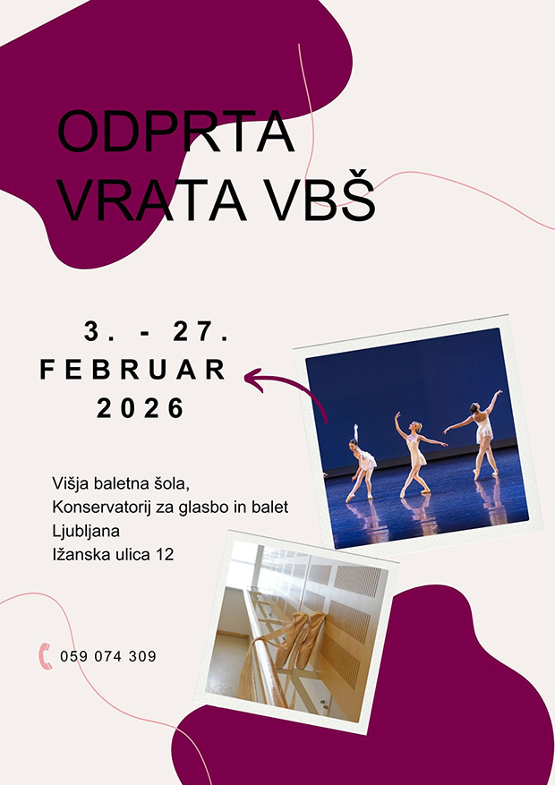 Vse zainteresirane mlade plesalce vabimo, da se nam pridružite med 3. in 27. 2. 2026 na VBŠ in dobite vtis o dogajanju na šoli.
